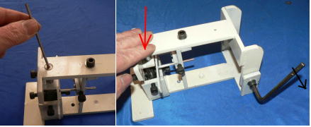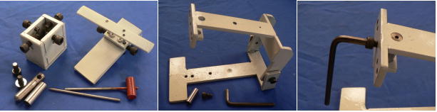 3ミリパンチャーモードにするためのアタッチメントです。左写真・左上が「雌型保持用コア」、その右が「つっかえ棒兼突きあたり板」(5ミリから