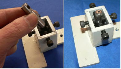 雌型を入れます。この時はまだ4本のポルト(東西南北)は締めつけず、ガタガタにしておきます。雌型の下は、六角穴付きポルトの頭にあてがいます。