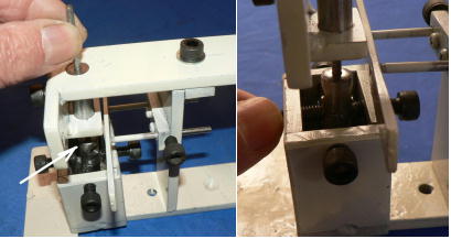 突きあたり板が付いたつっかえ板をポルトで取り付けます。これはある程度しっかり締めつけます。、位置は写真参照です(板の向きは大体前を向いていればOKです)。