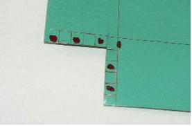 0.8ミリの溝を「間」をあけて連続して打ち抜き、板を弱くします。こうすると、まるで折り紙のように金属板を指先で曲げることが出来ます。