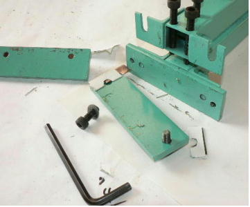 ここで掃除をします。スリット前板の 2本のポルトを外して抜き取ったカスを取り去ります。