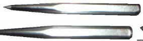 上は、今回先端を30度ぐらいに削ったセンターポンチ。 下は従来のままの90度ぐらいのセンターポンチです。 |