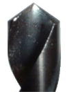 | 始めにお断り(言い訳)しておきますが、この方法が正しいとか、こうすべきであるとかいうつもりはまったくありません、ただ何となく正確な作業が出来るような気がしているだけですので、そのスジのかたは笑い飛ばしてください。 キリサキ(ドリルの刃の事・正式には、ストレートシャンクドリルと言うらしい)で金属に穴をあける場合、そのままでは刃先がツルツルすべってしまい、なかなか思い通りのところに穴があかない場合が多いものです。 その訳はキリサキの形状にあります。普通よく使うキリサキは2枚の刃が付いています。この2枚の刃の結合部分(もともと一体ですけど)が問題なのです。この部分は刃になりません、10.0ミリのキリサキで約1.6ミリあります。ここをチゼル(又はチーゼル)ポイントと言うそうです。(機械便覧より) |