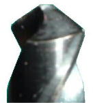 | この部分が刃になっていないために、10ミリほどの穴をいきなりあけようとすると、かなりの力と時間がかかるわけです。又、センターポンチでくぼみを付けても、1.6ミリ以上のくぼみにするには相当強くブッ叩かないとなりません。 最近日曜大工センターなどで、このチゼルポイントを無くした特殊なキリサキが売られています。 |