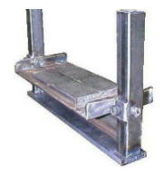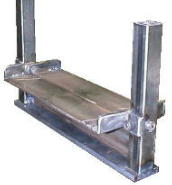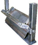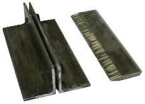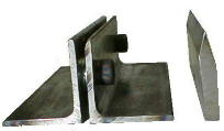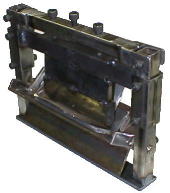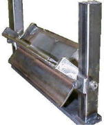 折り曲げ機下半分です。アングルの角の部分が中心となって二対が180度から90度まで変化します。これにより曲がり部分の板にキズが付きません。 | ![]() |