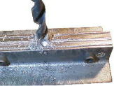 これは、裏返して万力に挟んだところです。当然両側の6ミリのボルトは使用していません。(このために3ミリのサラビスを使ったのです) |