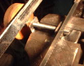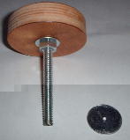 3分の長ネジを使います。一部ウオームになります。木製の円盤は加工中の支えです。