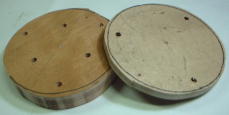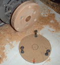 作ります。右側の円盤は「押さえ」ですので厚さ5ミリぐらいでOKです。大体丸ければ良いです。