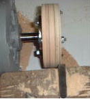 今回の工作のポイントは、よけいな部品(金)を使わないモーター直結方法と速度を抑えることと、砥石の取り付け方法を従来の中心のみの固定方法をやめて、好きなところで止める、というところでしょうか。