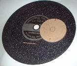 次に切断砥石側の加工です。本来なら砥石のメーカーが絶対許さない方法ですがそこはそれ、自己の責任(私も責任は負いません)として認識してください、砥石自体の強度が飛躍的に上がっていますし、回転速度も本来の三分の一程度ですので問題ないと思います。