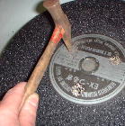 金敷の上で点検ハンマーのとがった方で軽く20回ほど叩きます。するとだんだん崩れてきます。