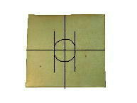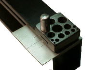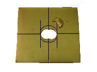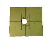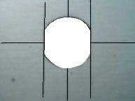 | 5a四角のアルミ板に正確に製図します。 | 9_か10_で片側の線ぎりぎりのところを打ち抜きます。 | 2度目以降は、右写真のように、刃の出っ張っている部分を加工材に必ずあてがってください。 | これを考えないで打ち抜きますと、思わぬ方向にずれて失敗する可能性があります。 |