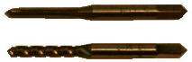 上がノーマルタップと言い、普通使用する物です。(安い) 下は、スパイラルタップと言いまして、これが超優れものなのです。なんと切り子が穴から自動的に排出されてきます。その為切りくずが穴の中に溜まらないので、非常に折れにくいのです。(高い、4・5倍) |