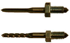 つくば工房では、この2種類のタップに左図のようなアタッチメントを取り付けて、一本、上が400円、下(スパイラルタップ)が1200円いずれも税込み+送料(郵便料金・時価)で販売致しております。 もちろんこれは、【らくらくドリル移動型】か【らくらくドリル固定型】がなければ使用不能です。開発当事者が言うのも何ですが、これは非常に楽です。又、私は今まで本当にバキバキ折っていたのですが、これになって一年ぐらい持つようになりました。(使用頻度大体、1日20ヶ所くらい) |