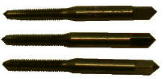 写真が見にくくて申し訳ありませんが(まったく私は写真が下手だ)タップには3種類ありまして、上から荒タップ、中タップ、上げ(仕上げ)タップと言います。上から順番に使ってネジを切る、と、説明書に書いてありますが、原子力やロケットの部品ならいざ知らず、たいていは中タップ一本でOK(電子・模型工作では)だと思います。 |