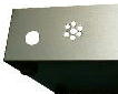 では実際にあけてみましょう、あけたいパネル面に、治具を乗せ、位置決めします。 |