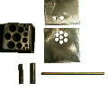 一個だけあけたアルミ片(治具の治具)を使って、製図した位置に正確に打ち抜きます。これで治具が出来ました。いつでも簡単にこの蜂の巣状の穴あけが出来ます。 |