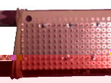 発光ダイオード一個づつ対角線にあたるピンだけ半田付けします。絶対2カ所だけです。それ以上つけてはなりません。 |