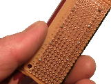 まず、ベースとなるプリント基板を切り出します。この時、左右に1a程度余裕をとると、パネルに取り付けるとき楽です。この写真では右下が今回のベースです。 |