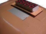 取り付けた発光ダイオードの全体の寸法を物差しで測ります。この場合は縦17_・横50ミリでした、この寸法を、適当な紙に正確に製図します。製図し終わったら、現物をあてがって確認してください、0.1_狂っていても書き直してください。(0.1_はたとえです。そのくらいの気合いを入れます) |