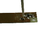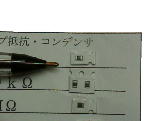 抵抗チップを押さえつけて、半田付けしたところです。 |
