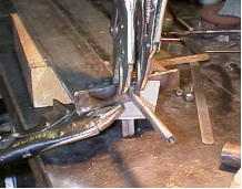クランプを多用して、正確に位置決めし、アルゴン溶接したところです。 |