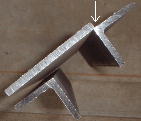外曲げとは内曲げにつづいて反対側に曲げることで、これを「三次折り曲げ」と命名させて頂きます。この内曲げから外曲げまでの寸法は、内法(うちのり) 6ミリ、1.0ミリのアルミ板で外法(そとのり)8.0ミリが最小です。 |
