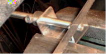 これが今回の治具です。アングル同士を平鉄で連結して、左右に10ミリの穴をあけただけです。左側のものは丸棒に10ミリの穴をあけ、固定用のボルトを付けたものです。 |