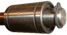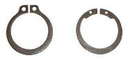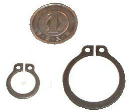 | で、どんな用途に使うかと言いますと、丸棒の一定の位置に溝を掘りまして、これをはめます。丸棒に貫通している部品はこれによってスライドが制限されます。孫悟空の頭にはまっているワッカとよく似ています。 穴用は使い方が難しいので今回は軸用です。と言っても今まではこの加工は旋盤がないと出来ませんでした、私は万力と金ノコだけで出来る治具を開発しました。(大げさかな?) |