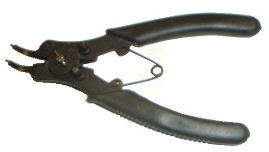 取り付けたり取り外したりするには、このようなスナップリングプライヤーという工具を使います。