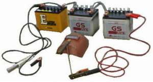 | 溶接といっても、色々な種類があります。このコーナーでは、鉄を対象とした溶接機です。その中にもたくさんありますが、ここでは抵抗溶接という手法の溶接機です。 一般的な抵抗溶接機には、100V(家庭用電源)、200V(商用・工業用電源)、エンジンウエルダー(エンジン式)、そしてあまり知られていませんが、バッテリー式とあります。(そのほかにも、スポット溶接機とか色々ある) ところで、抵抗溶接はパワーが命です。大体3KWはほしいです。家庭用の電源は、100V15A程度しかとれませんので、100*15=1500 で、1.5KW程度です。これではとても足りない、1.6ミリの溶棒(最低の細さ)がやっと溶ける程度です。しかし、200Vを引き入れている家庭はそうは無いと思います。エンジンウエルダーはリースで借りられますが、家を建てる場合をのぞいて、そうそう借りられません。 そこで登場がバッテリー式溶接機です。 自動車のバッテリーです。そろそろ本格的な冬に備えて、ガソリンスタンド等で、新しいバッテリーに交換するドライバーの方が増えていると思います。そこでスタンドに行って、廃棄されるバッテリーをもらってきましょう、産業廃棄物ですから気持ちよくくれると思います。 ただし、何でもかんでもはいけません、次の条件に合致する物にしてください。