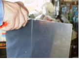 1.5ミリ以上の板の場合、折りきるときちょっとしたこつがいります。経験を積めば簡単ですが、どうしてもうまくいかない場合は、次に述べる厚板の方法で切り取ります。
